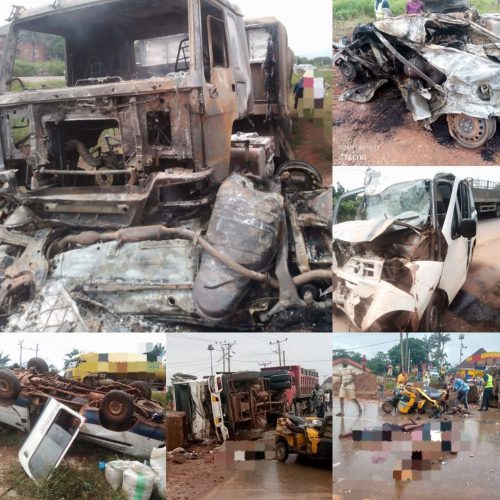 Tragedy struck along the Ozalla/4-Corner axis of the Enugu-Port Harcourt Expressway on Wednesday as two separate road accidents claimed the lives of ten people and left ten others severely injured.