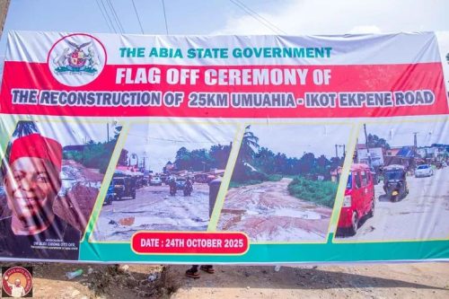 Abia State Governor, Dr Alex Chioma Otti, OFR, has flagged off the reconstruction of the long abandoned 25 kilometres Umuahia–Ikot Ekpene Road with assurance that the work will be completed within 18 months.
